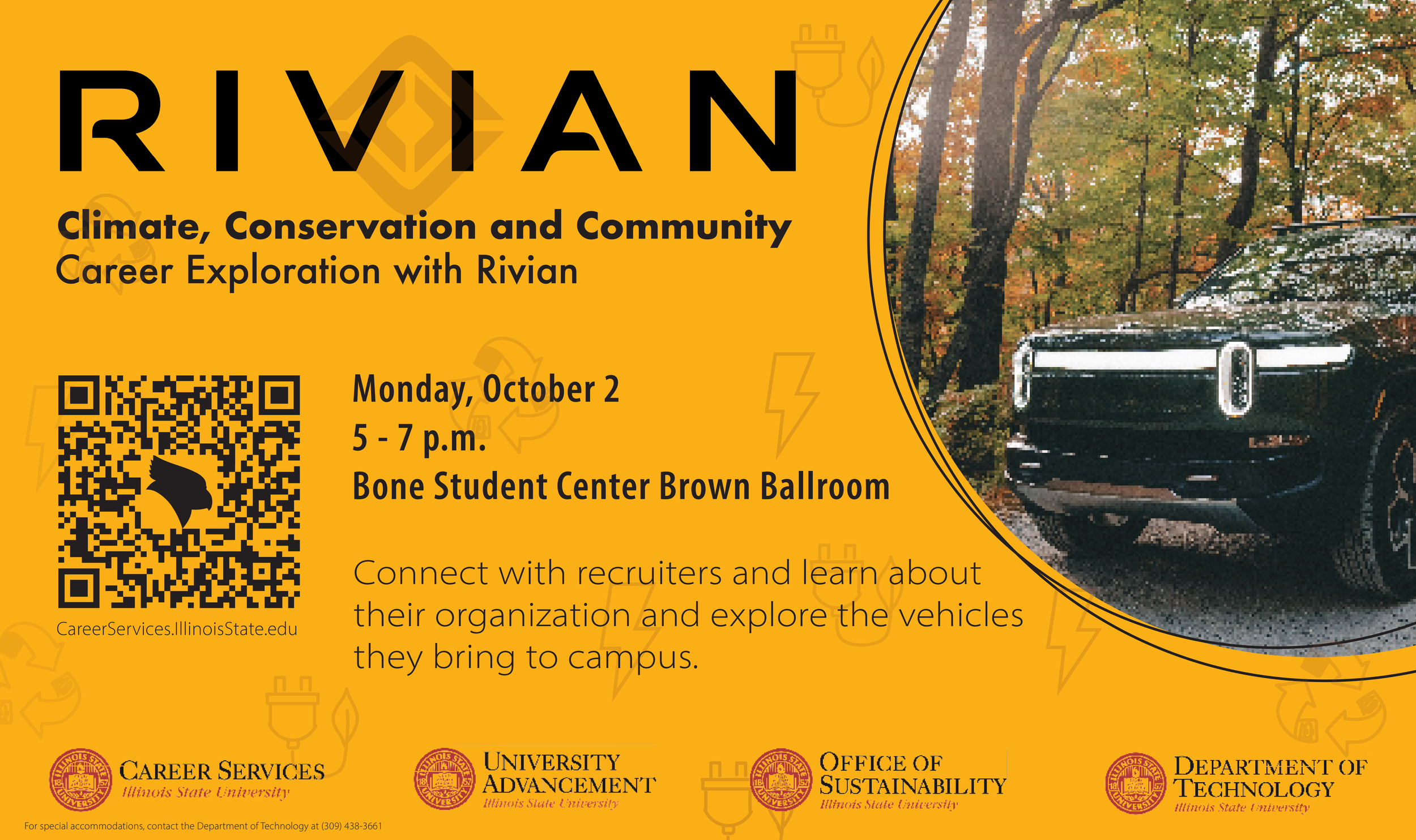 This project successfully aligns Rivian’s brand with Illinois State University’s commitment to student career development. By using Rivian’s distinctive yellow and focusing on eco-friendly themes, the design encourages students to consider careers that contribute to sustainability and environmental stewardship.