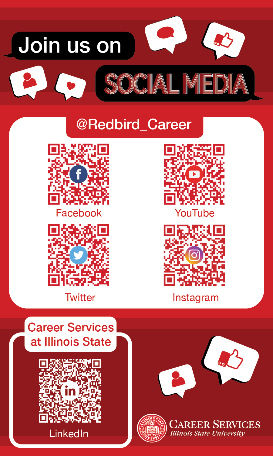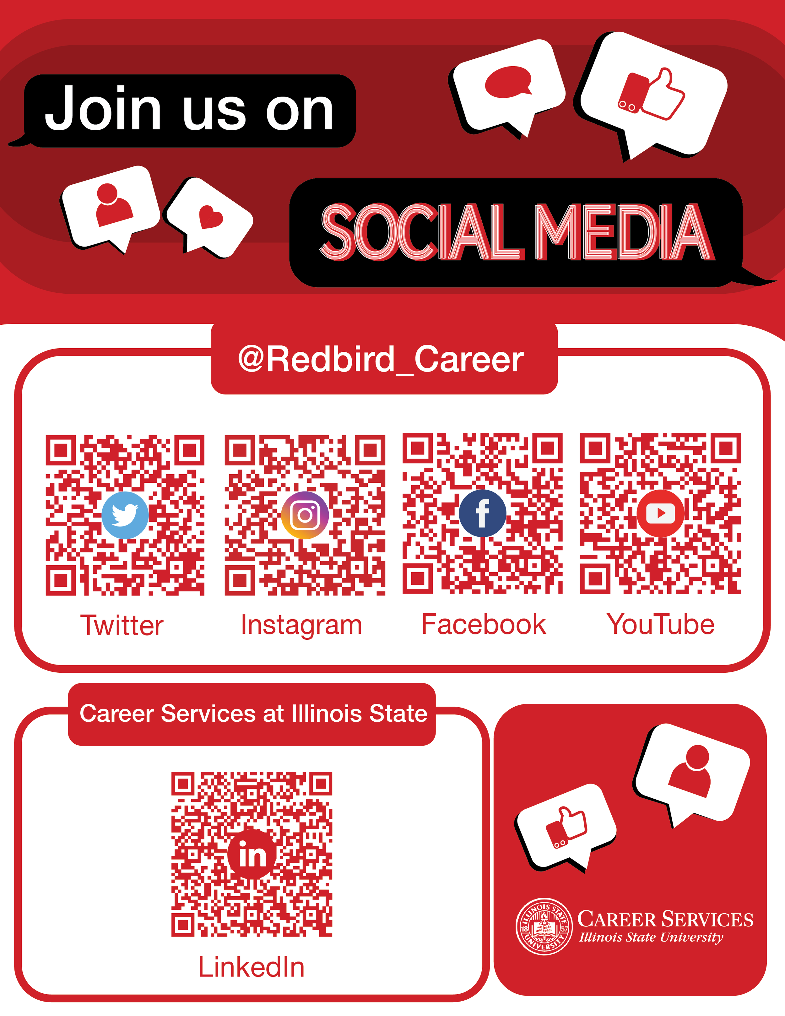 To create a vibrant and engaging flyer that promotes Illinois State University Career Services' social media presence. This piece aims to increase student engagement across Career Services' digital platforms by providing a convenient and visually appealing way to connect through QR codes.